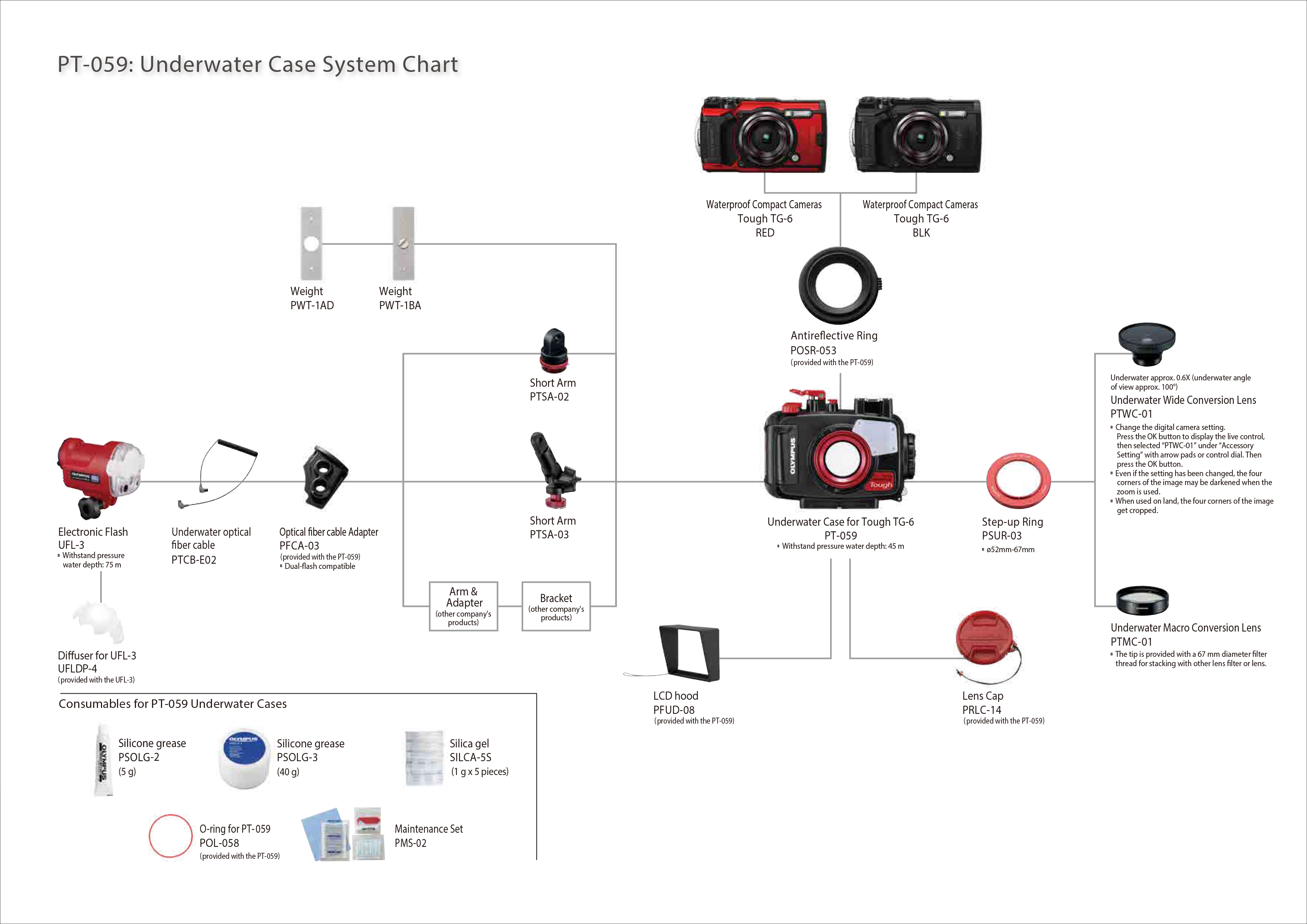Port charts from various underwater housing manufacturers. Each includes details about port sizes, required extensions, and compatibility with specific camera models and lenses. If you need help putting together an underwater camera system, please feel free to reach out to us in our chat or email us at sales@bluewaterphotostore.com.