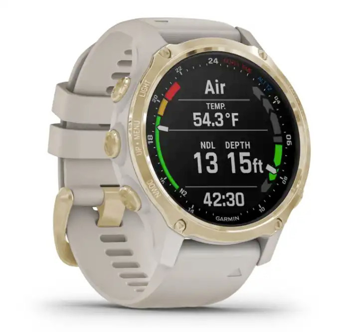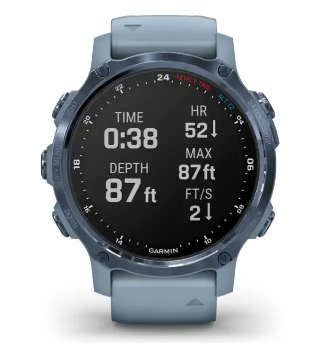 - Dive log: Stores and reviews data for up to 200 dives, and can be shared via the Garmin Dive app